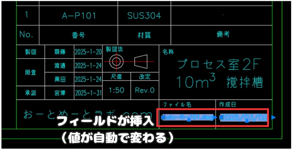 ・フィールド機能を使うと図面管理の自動化が可能になり、作業時間を削減できる